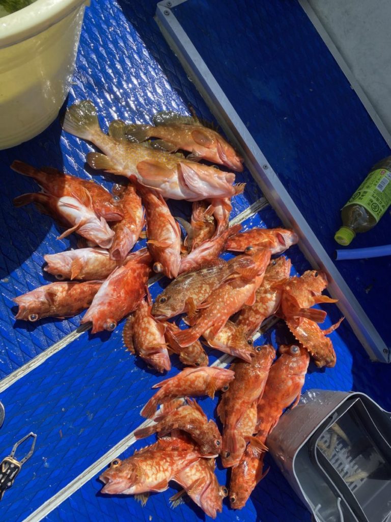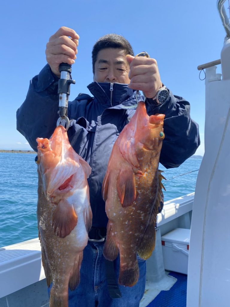 本日は遠征根魚真鯛、風でポイント選べずパッとしませんでしたが、良いサイズのアコウは何本か上がりました。肝心の真鯛は、、、BOSE!