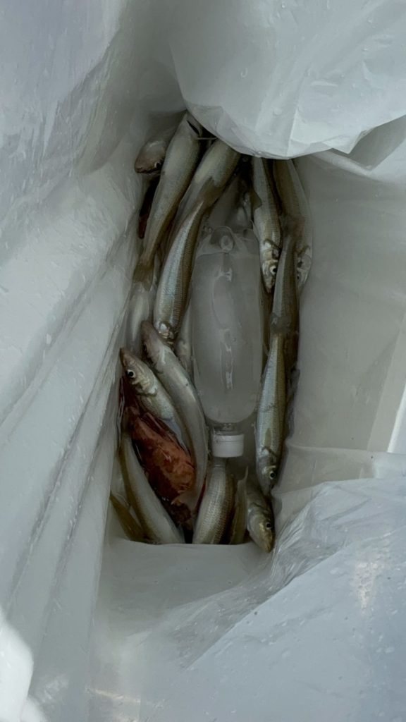 1号はキスヒラメでした。マゴチ、ヒラメもゲットですがキスとアラカブ、キジハタってパターンの方もおられました。泳がせ餌狙いとヒラメの時間もあって、キスのアタリは終始有るんですがサイズにばらつき有りで2割リリースでした。
