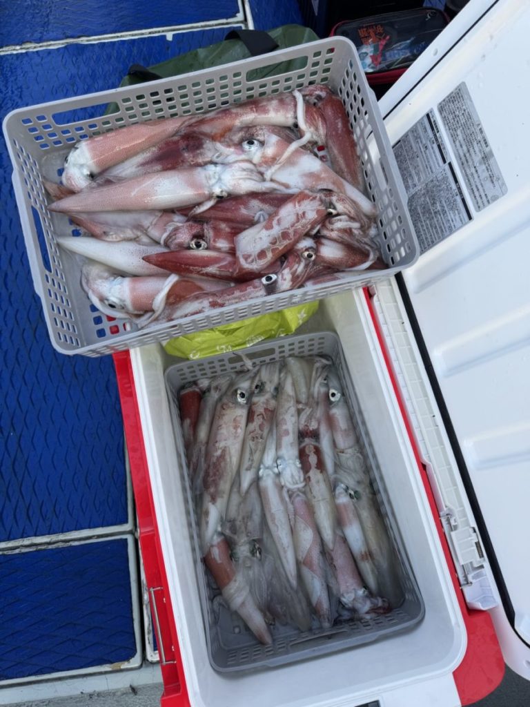 イカメタルで出船♪日が沈んでからは一投ワンヒットって感じで続いてましたが潮止まりで一回失速、その後またラッシュタイムでした。思ったほど数伸びず。