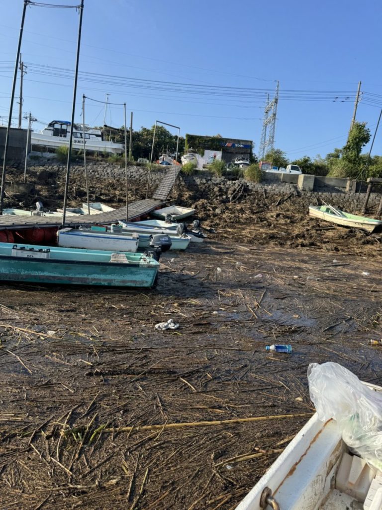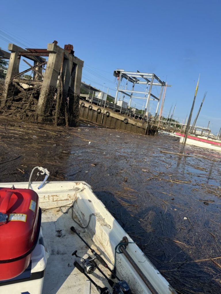 帰ってみると豪雨のゴミで港が大変なことに。昨日出る時は綺麗だったのですが、時間差で押し寄せてました。おかげで着岸できずでボートでゴミかき分けながらピストン輸送でお客様下船でご迷惑おかけしました💦