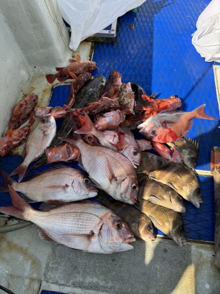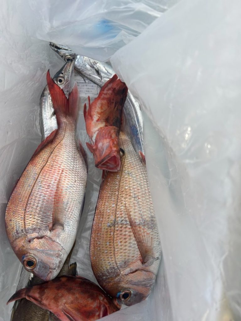Home お知らせ, 釣果情報 近場真鯛、太刀リレー 近場真鯛、太刀リレー 2025.10.13 お知らせ、釣果情報 Tweet Share RSS Pin it 近場真鯛便、太刀リレー便で出船。潮が動かず魚が口を使いませんでした。サイズも振るわずでしたが、前回レンタルで、リピートで今回はマイタックル持参の女性アングラーのお客様が6枚と好調でした。 初卸しロッドでの釣果!お一人分♪ しかしながら全体的に渋い1日でした。 ありがとうございました! Tweet Share +1 Hatena Pocket RSS feedly Pin it コメントは利用できません。